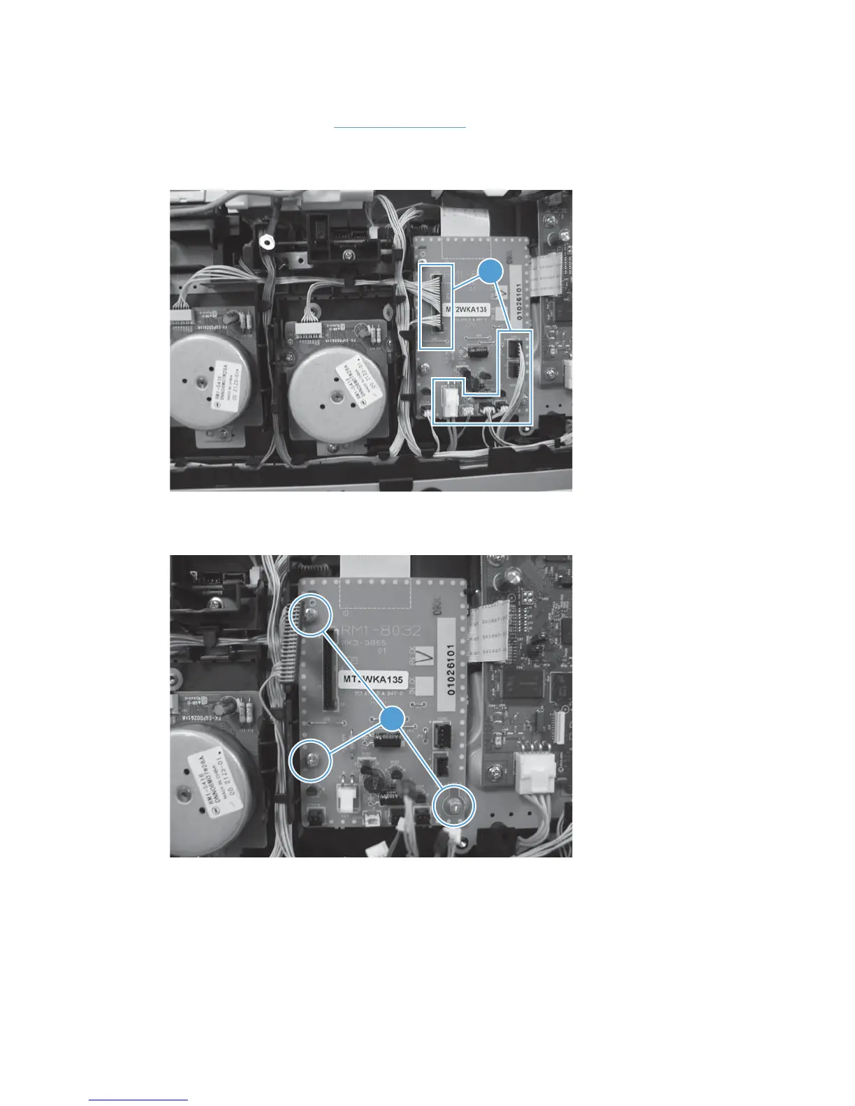 2. Disconnect all of the connectors and one FFC (callout 1) on the PCA.