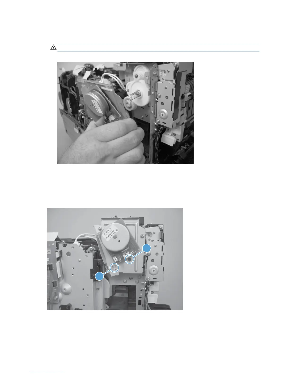 CAUTION: Do not lose the spring or gears when you remove the fuser-motor assembly.