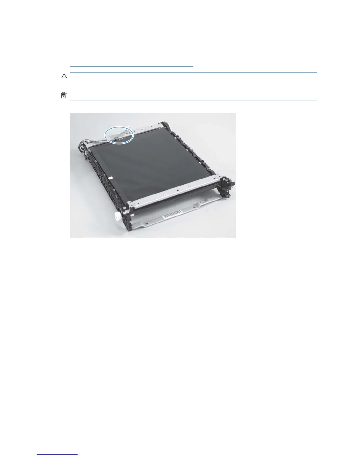 Tape or tape residue on the transfer belt will cause print-quality problems.