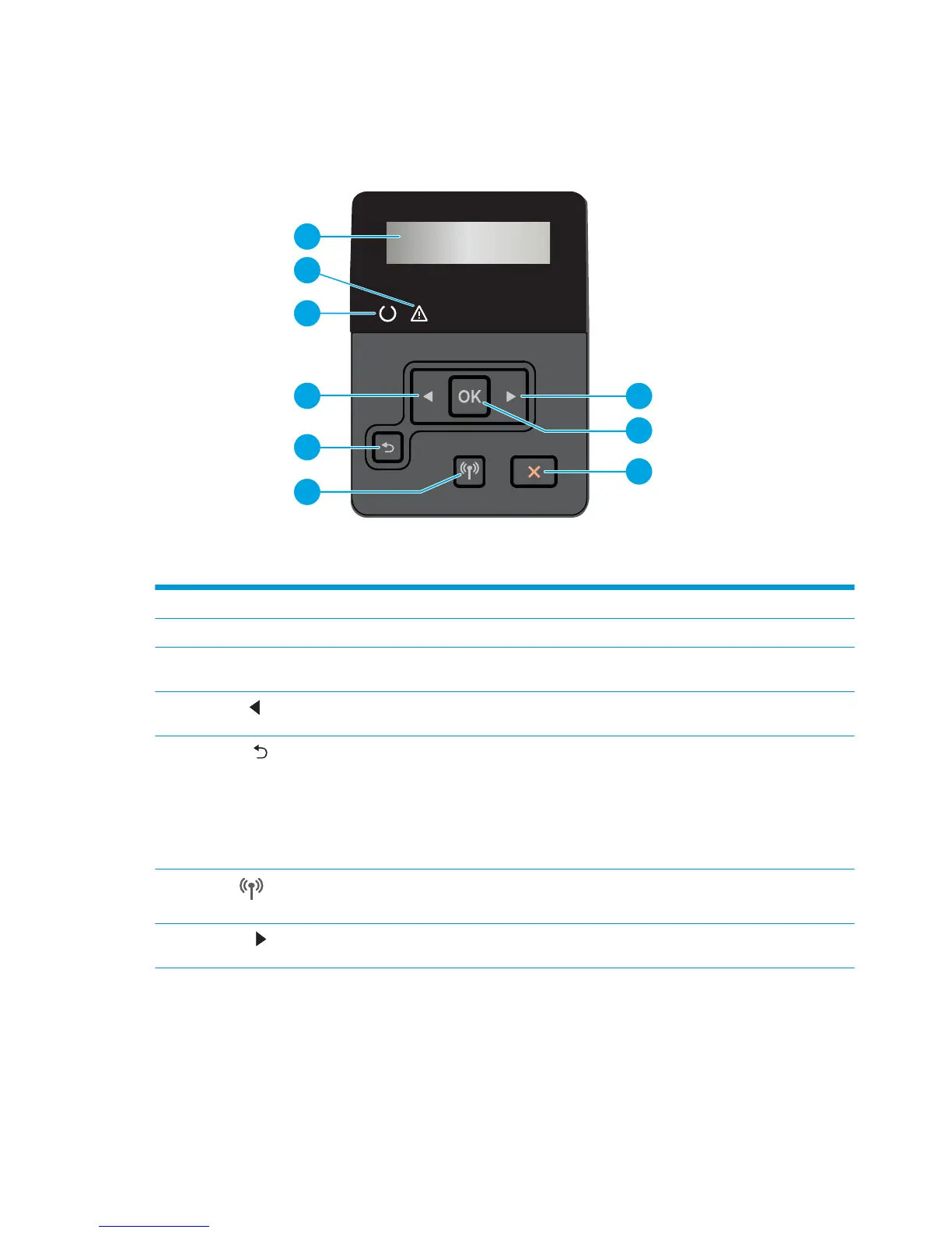 1 Control panel display This screen displays menus and printer information.