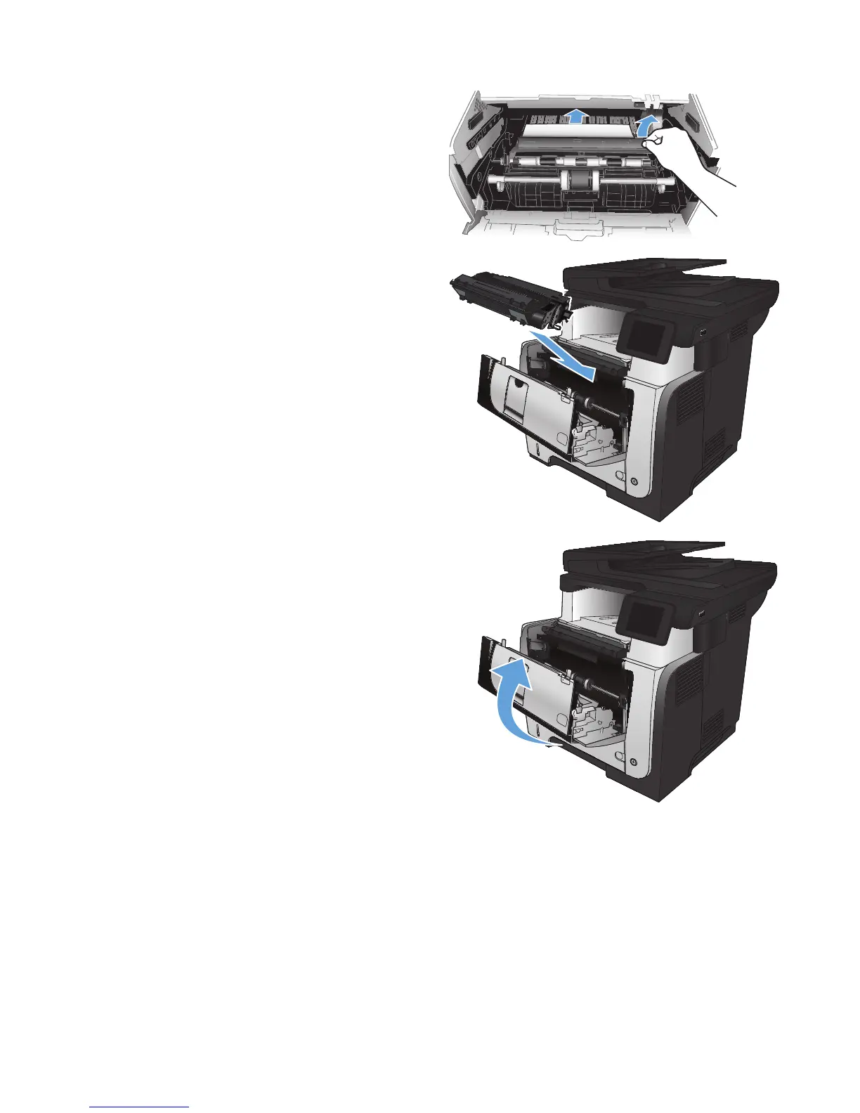 4. Lift the jam-access covers and remove any