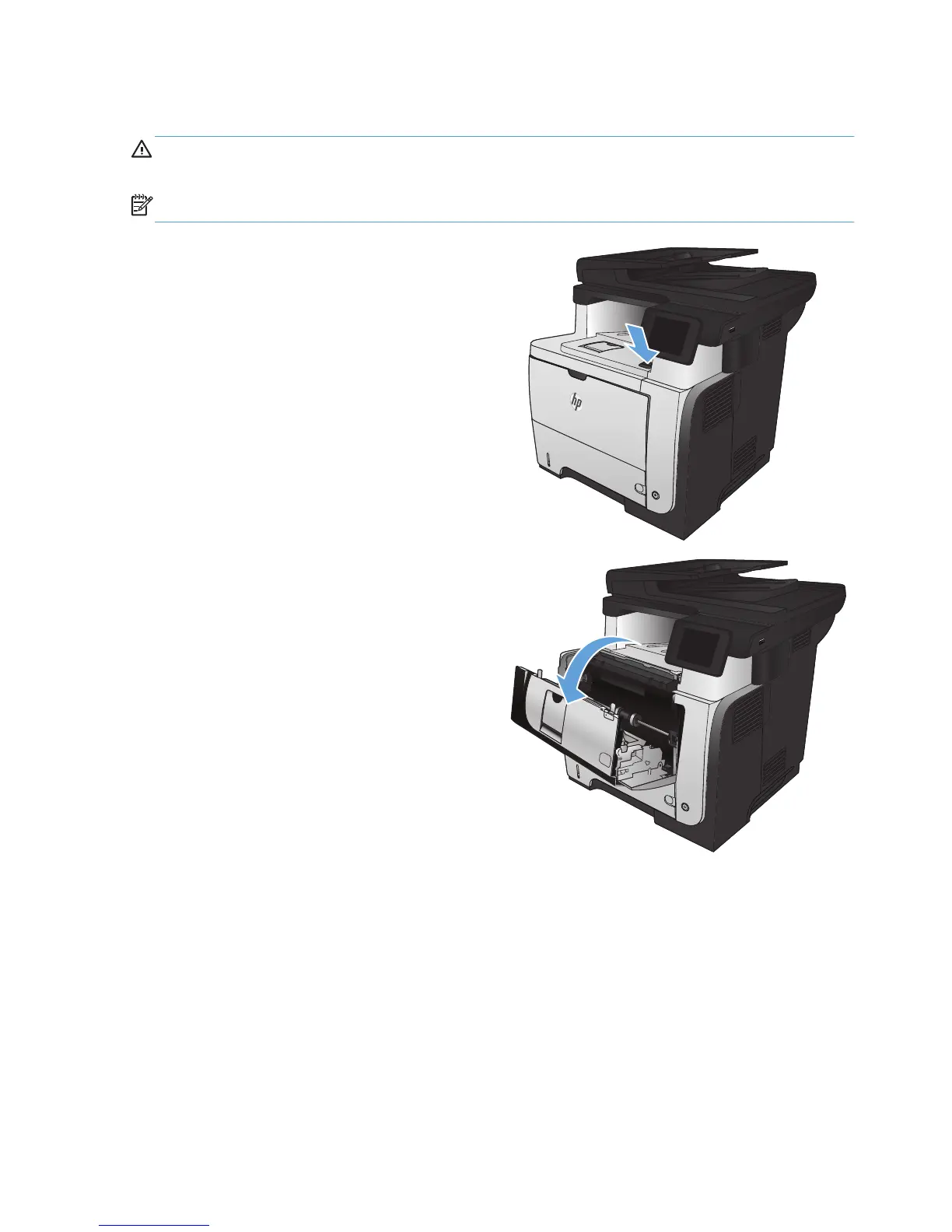 CAUTION: If toner gets on clothing, wipe it off by using a dry cloth and wash the clothes in cold