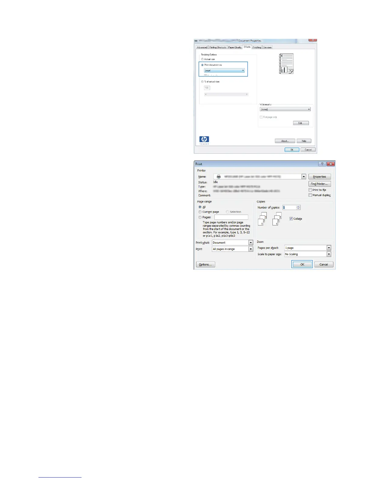 5. In the Print dialog box, click the OK button to