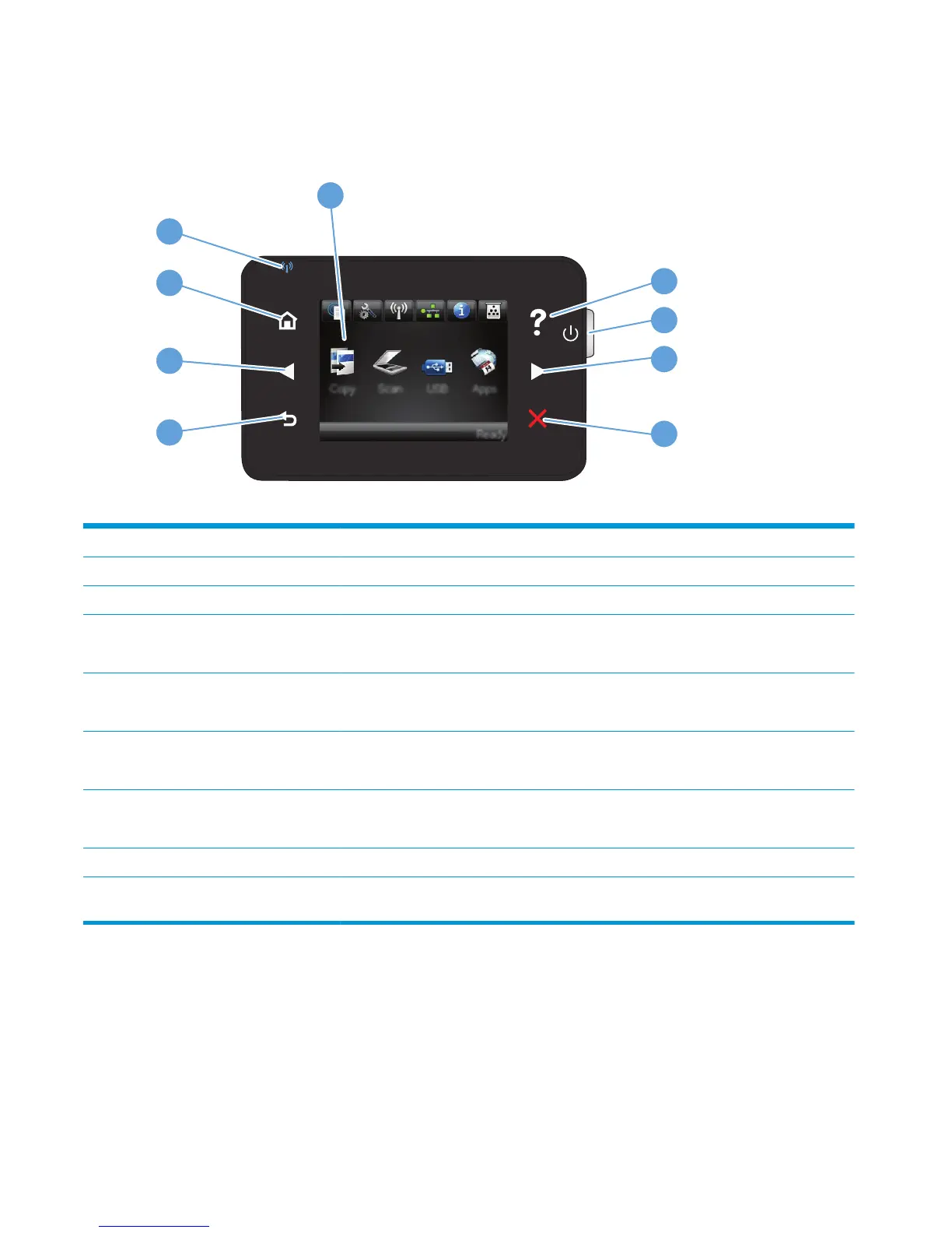 5 Cancel button and light Clears settings, cancels the current job, or exits the current screen