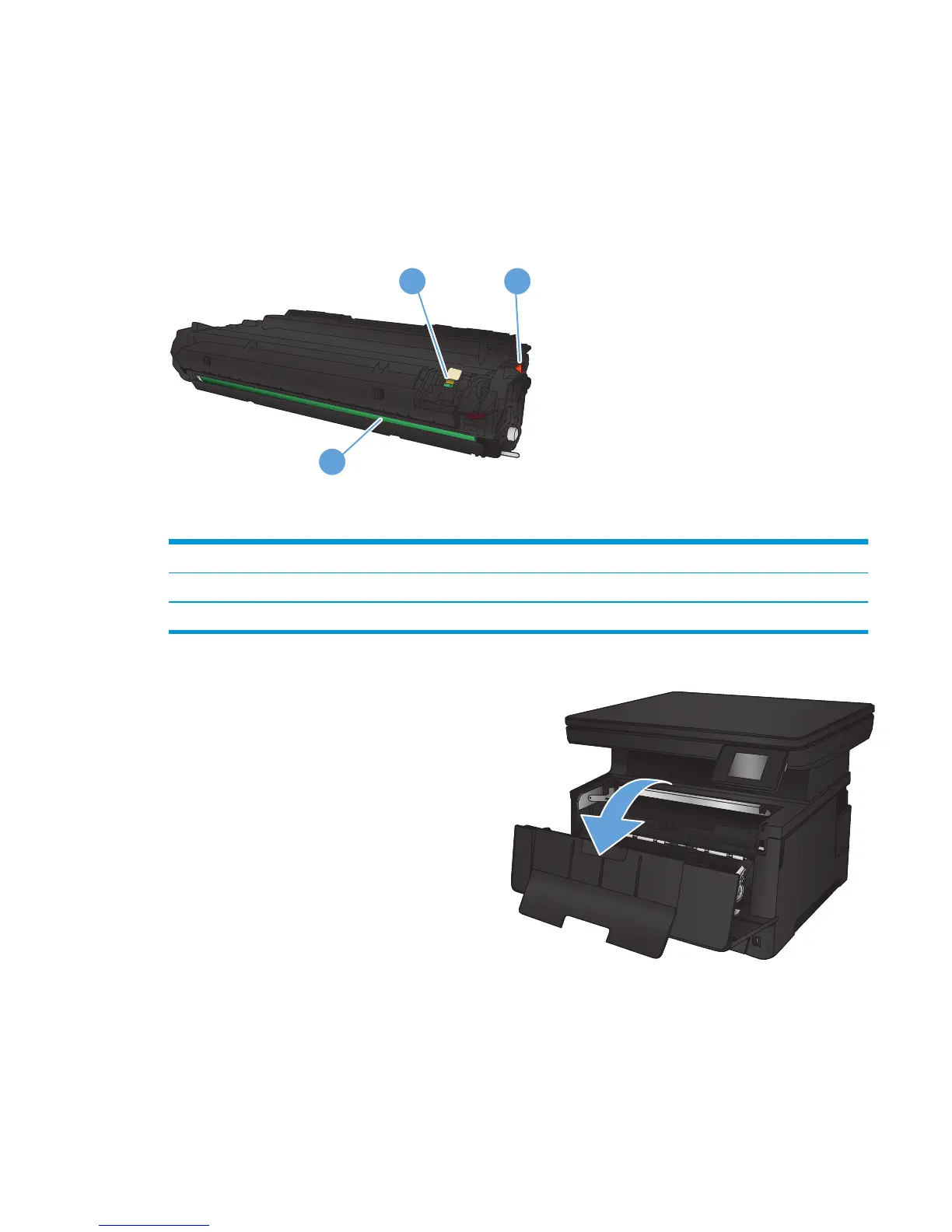 The following illustration shows the toner-cartridge components.