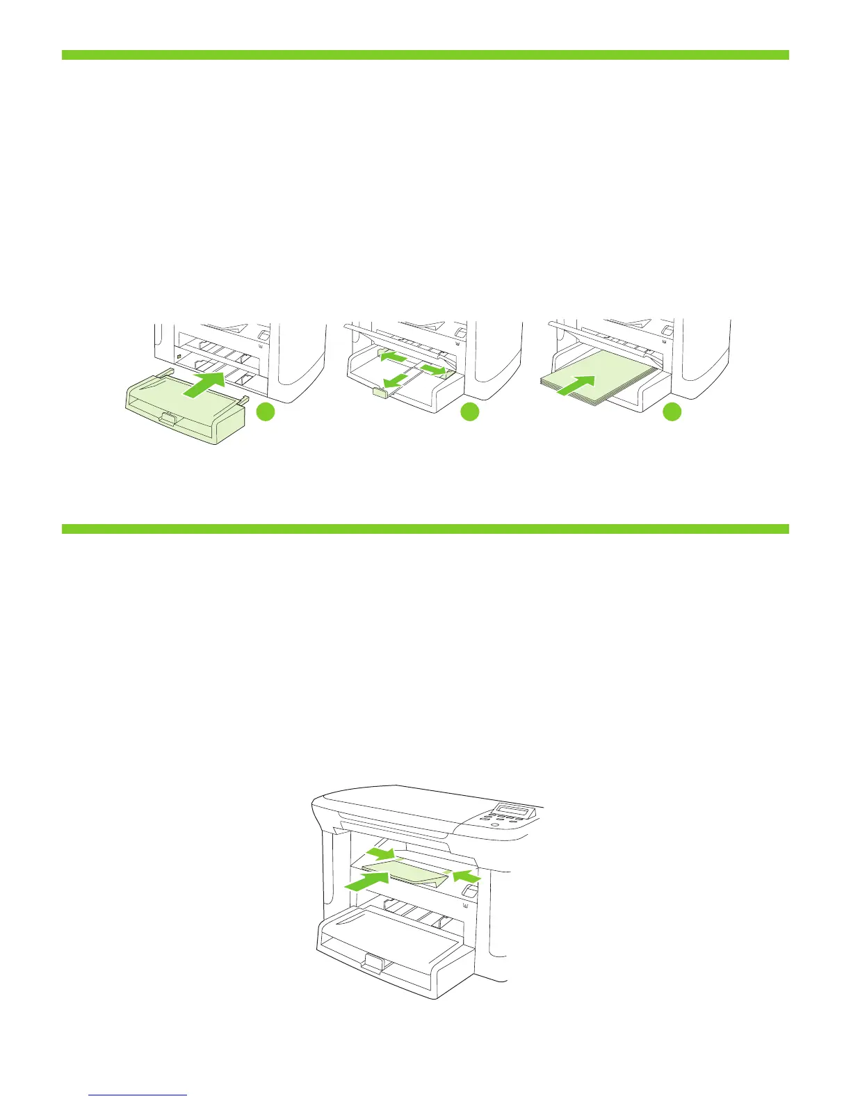 Instale a bandeja para papel, ajuste as guias de papel e depois coloque papel.