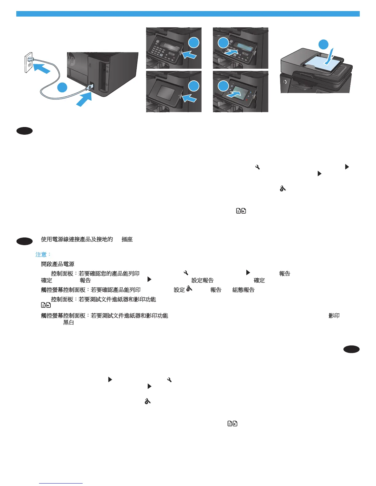 4. LCD 控制面板:若要測試文件進紙器和影印功能,請將列印的報告正面朝上裝入文件進紙器。 在控制面板上,按下「開始影印」
