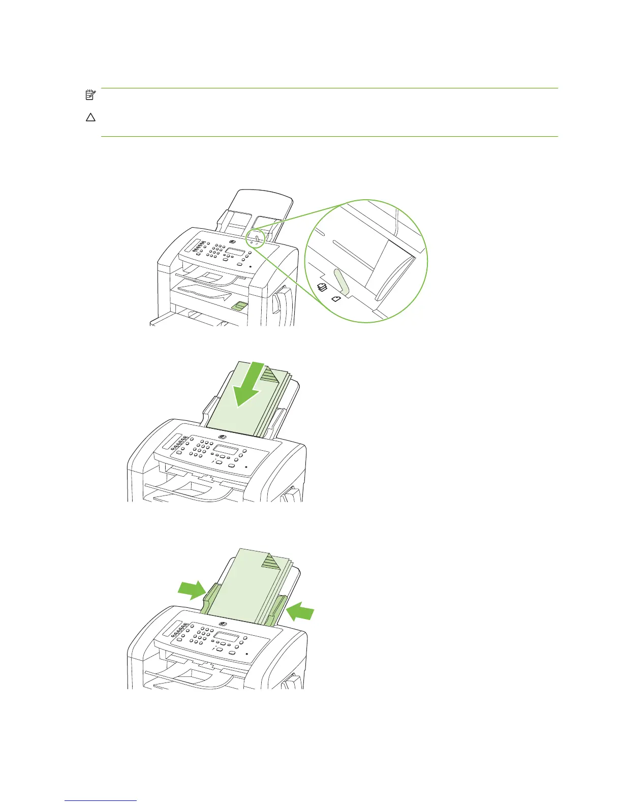 3. 将纸叠滑入 ADF 进纸盘,直到纸叠无法移动为止。