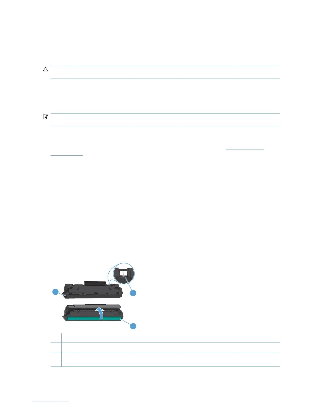 CAUTION: To prevent damage to the print cartridge, do not expose it to light for more than a few