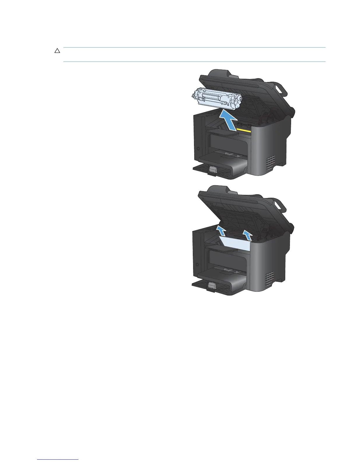 CAUTION: Do not use sharp objects, such as tweezers or needle-nose pliers, to remove jams.