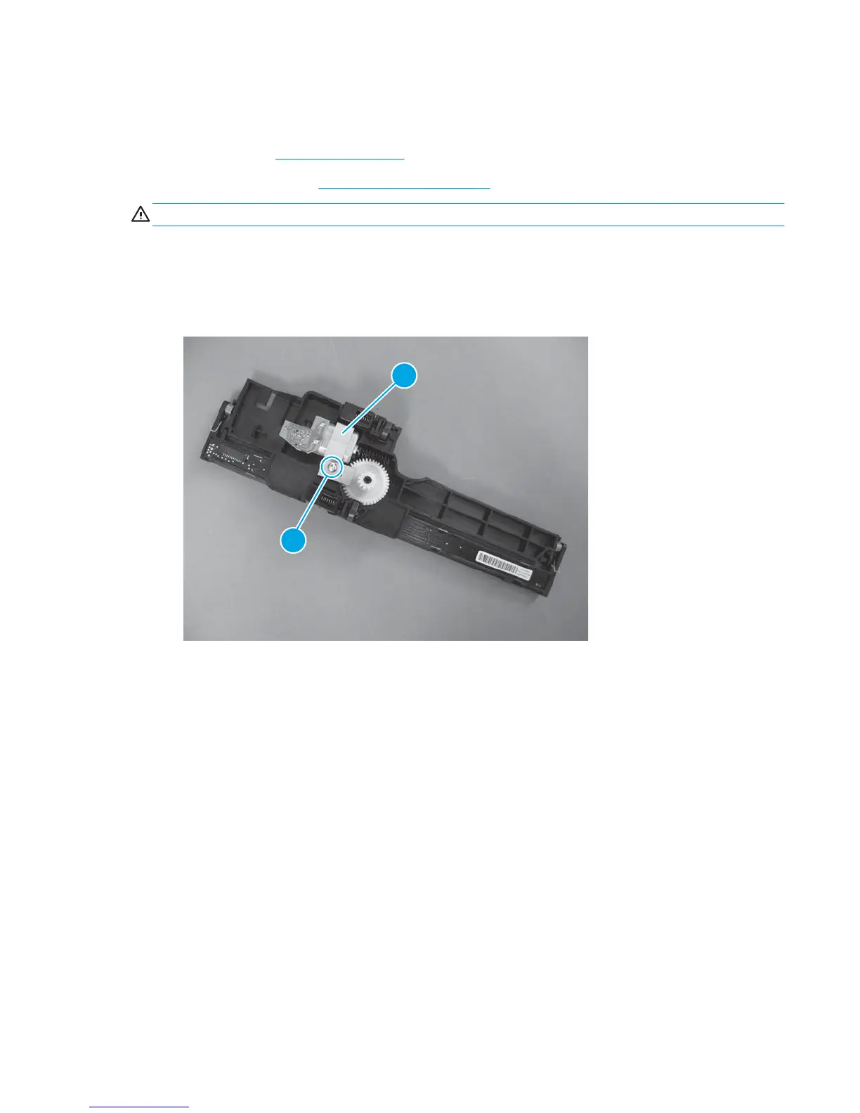 1. On the bottom of the scan drive system, remove one Torx T10 screw (callout 1), and lift off the metal