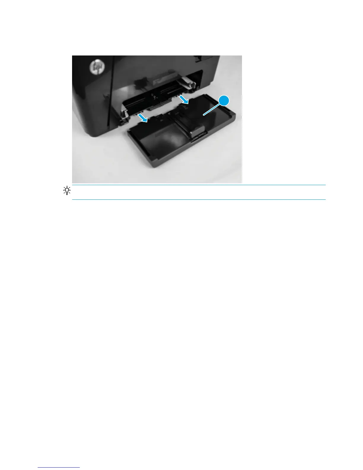 Reinstallation tip When reinstalling the input tray, align the tabs on the tray with the slots on the