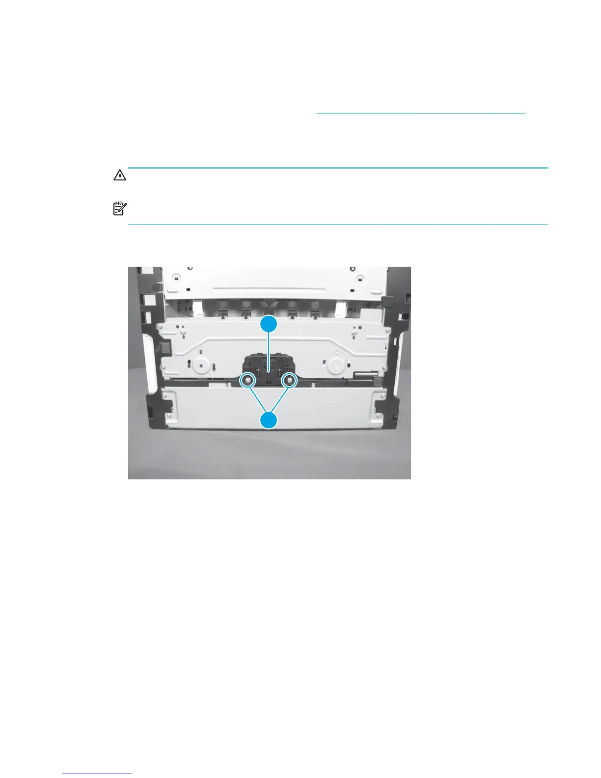 2. Remove two screws (callout 1) and the separation pad assembly (callout 2).