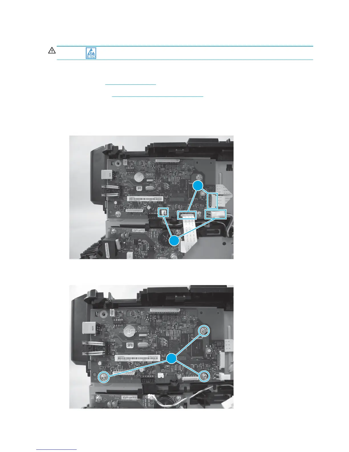 2. Remove three screws (callout 1), and then remove the formatter PCA.
