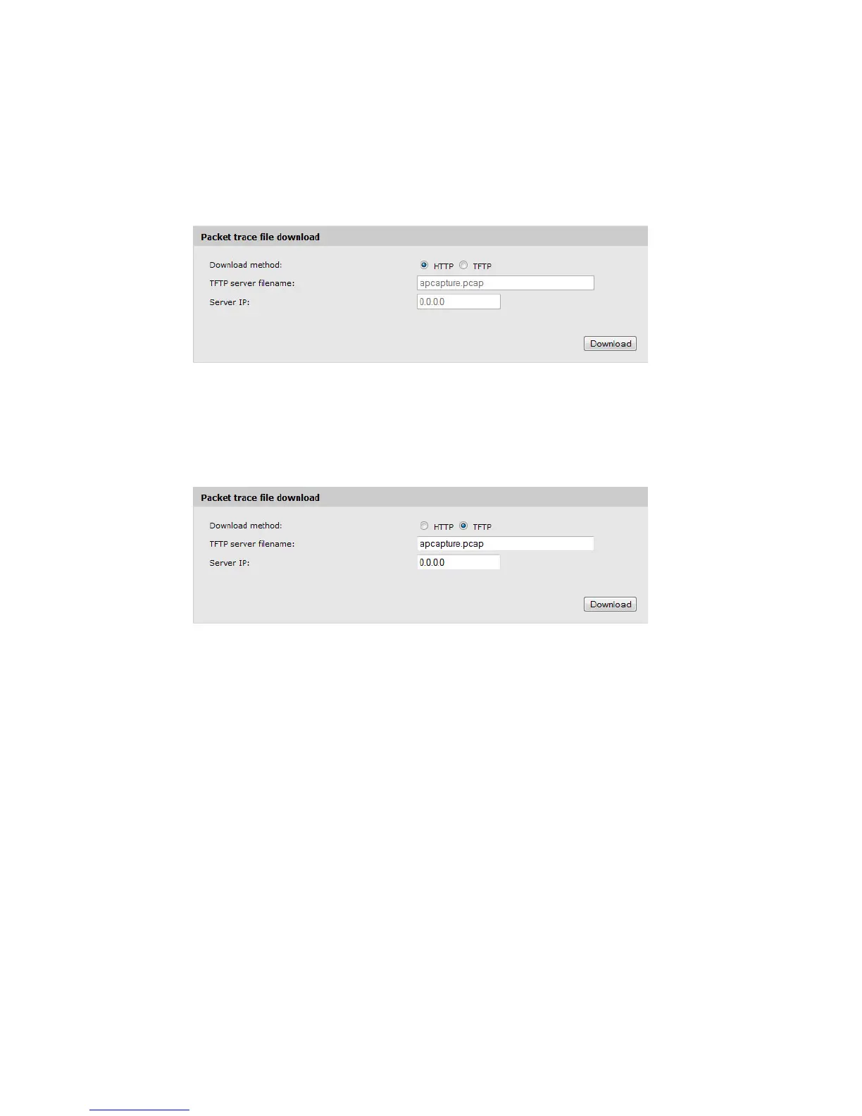 This section enables you to download the trace file by TFTP to a configured TFTP server, or by
