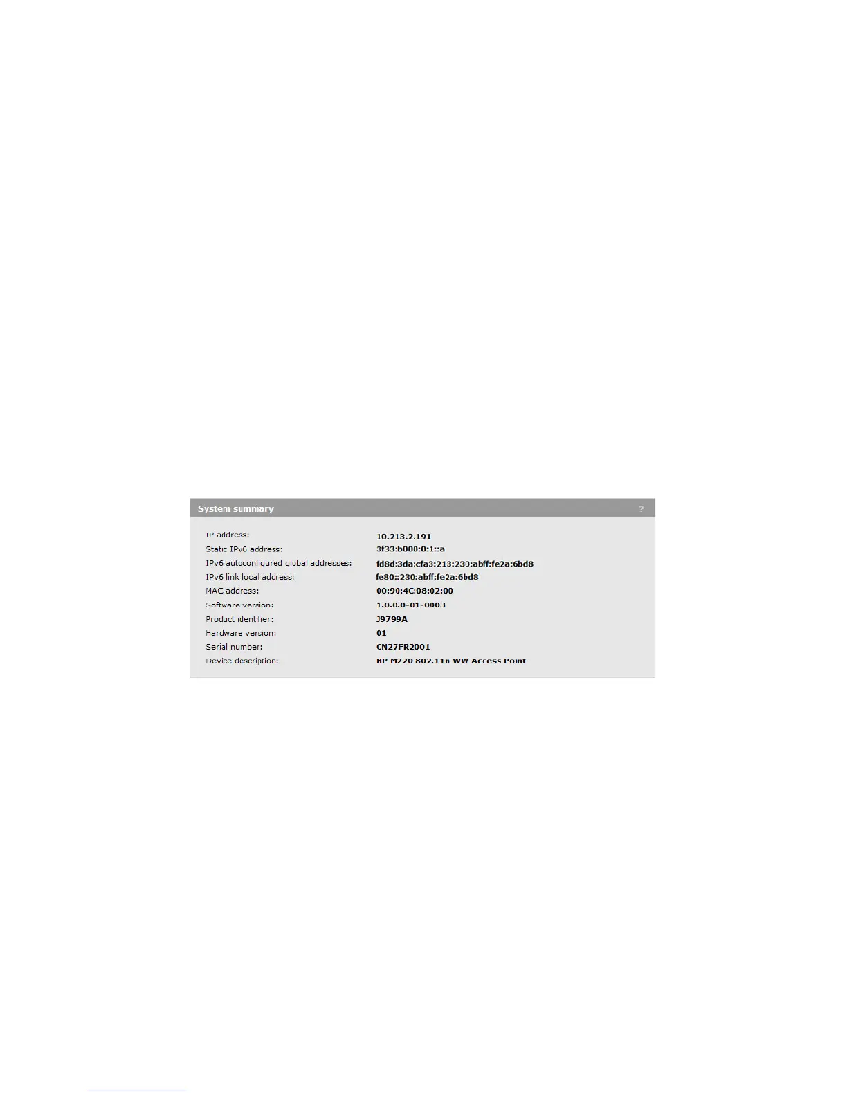 The IP address assigned to the AP. See the Network > IP page to configure IP information.