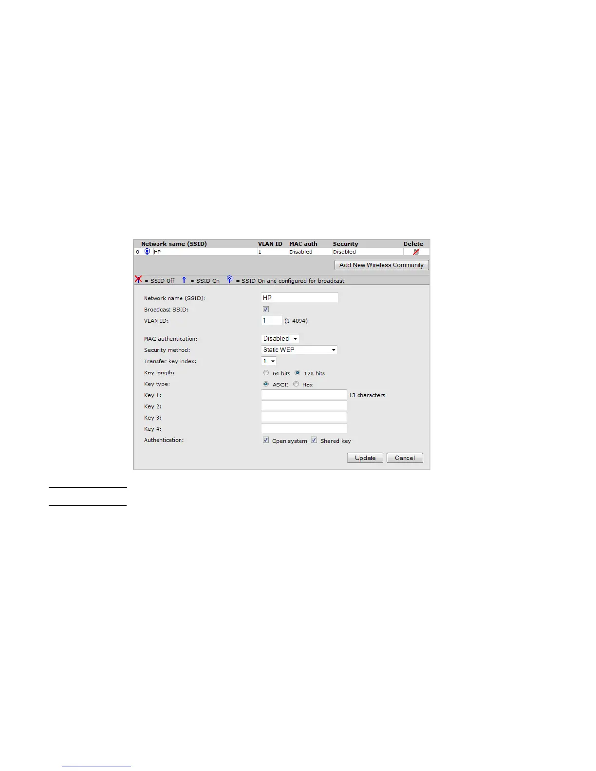 Note WEP cannot be used when the radio operating mode supports 802.11n.