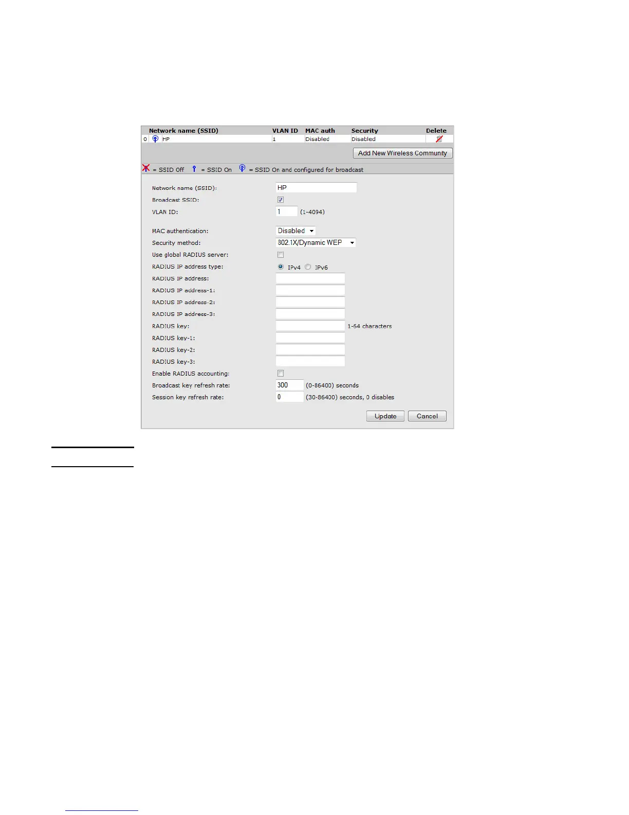 Note Dynamic WEP cannot be used when the radio operating mode supports 802.11n.