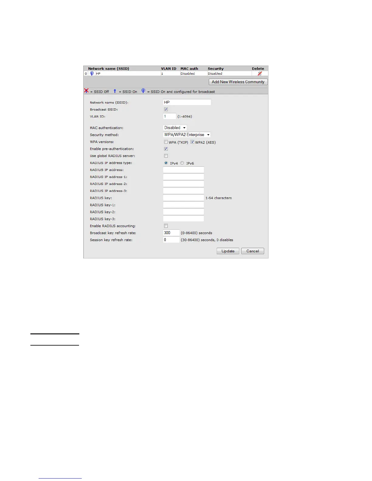 Note WPA (TKIP) cannot be used when the radio operating mode supports 802.11n.