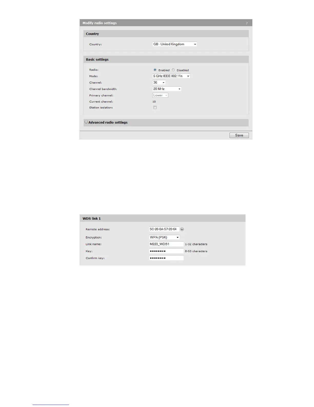 • Set the Link name to M220_WDS1.