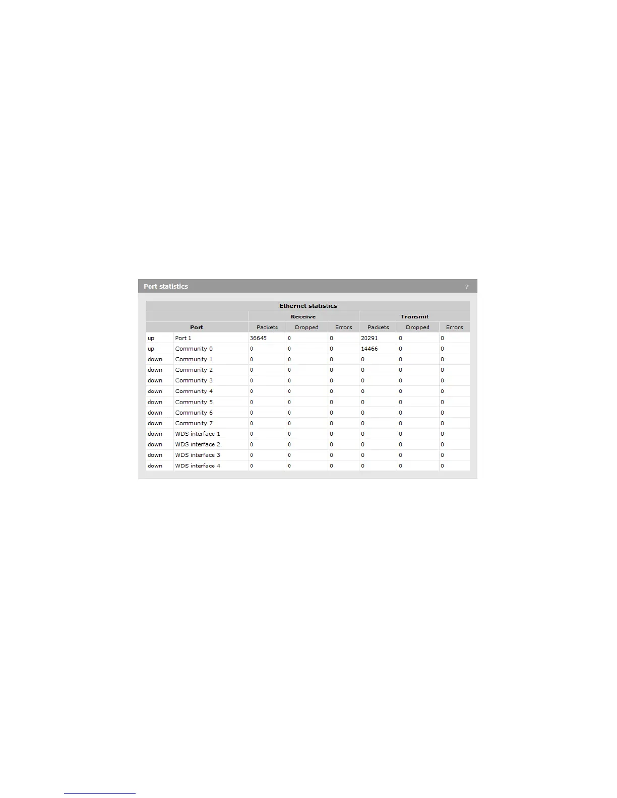To view statistics on Ethernet packets received and transmitted on the wired and wireless ports,