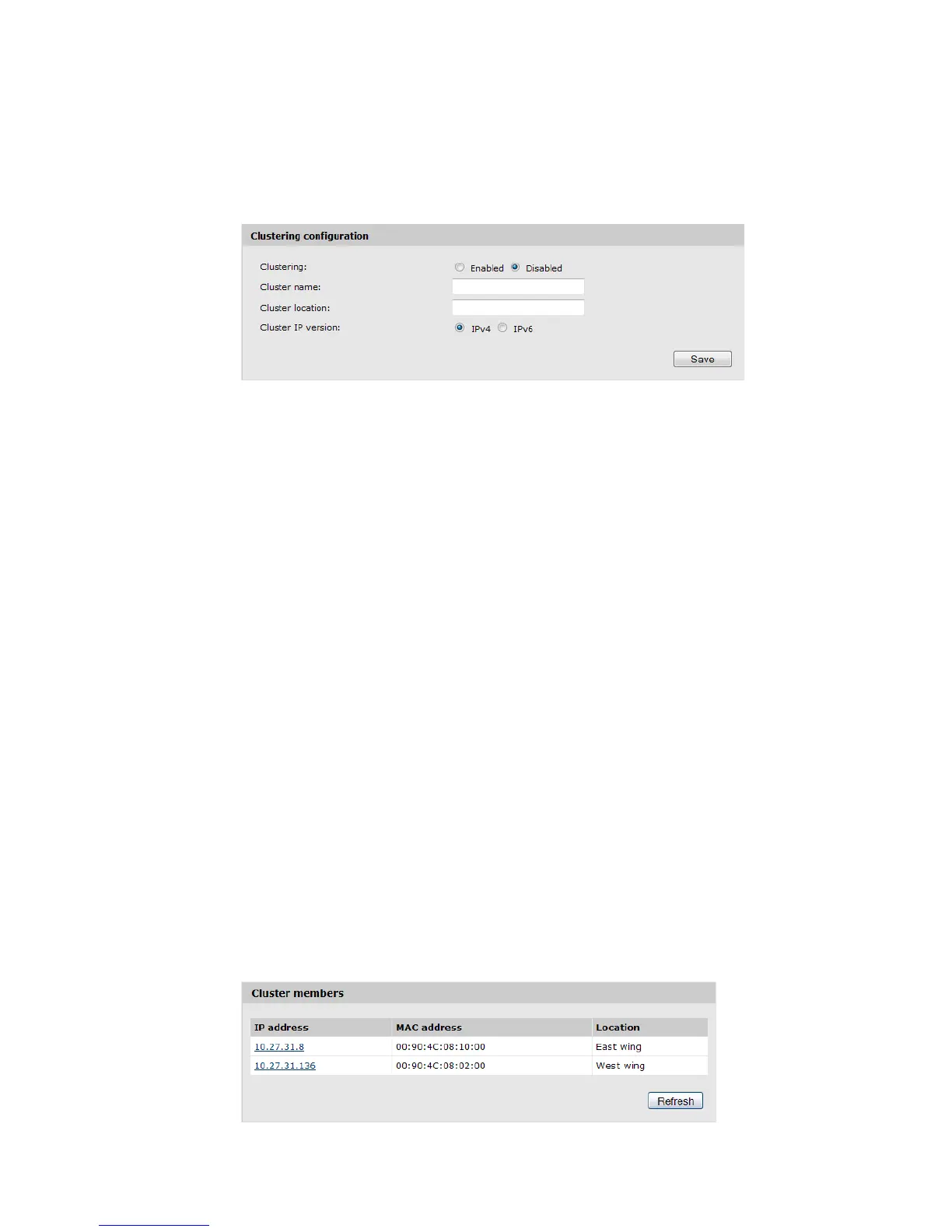 A Cluster members area displays to indicate whether a cluster is formed. If no matching