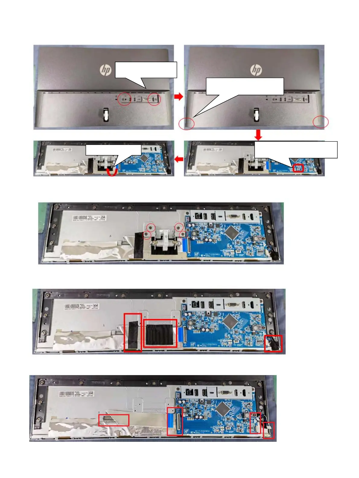Step 4: Remove the acetate tapes from the LVDS/ LED cable.