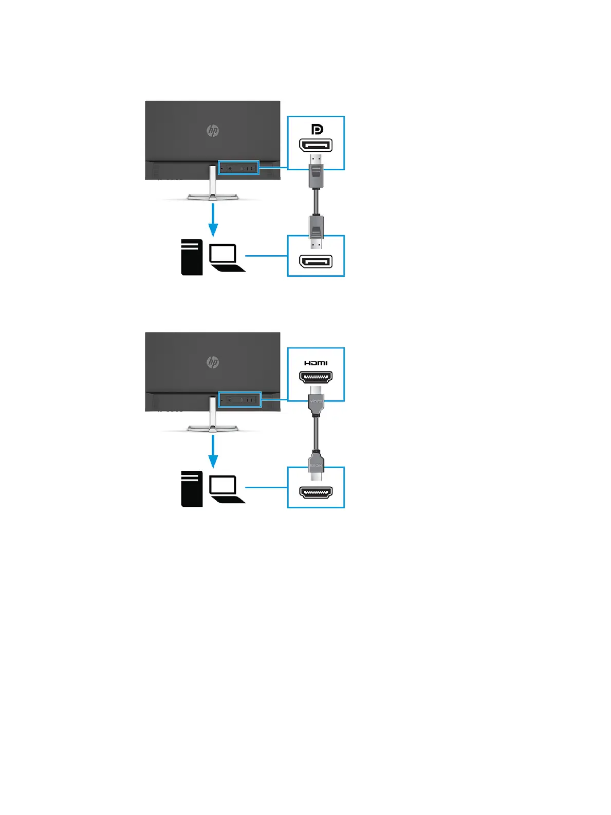 Connect one end of a DisplayPort cable to the DisplayPort connector on the rear of the monitor and