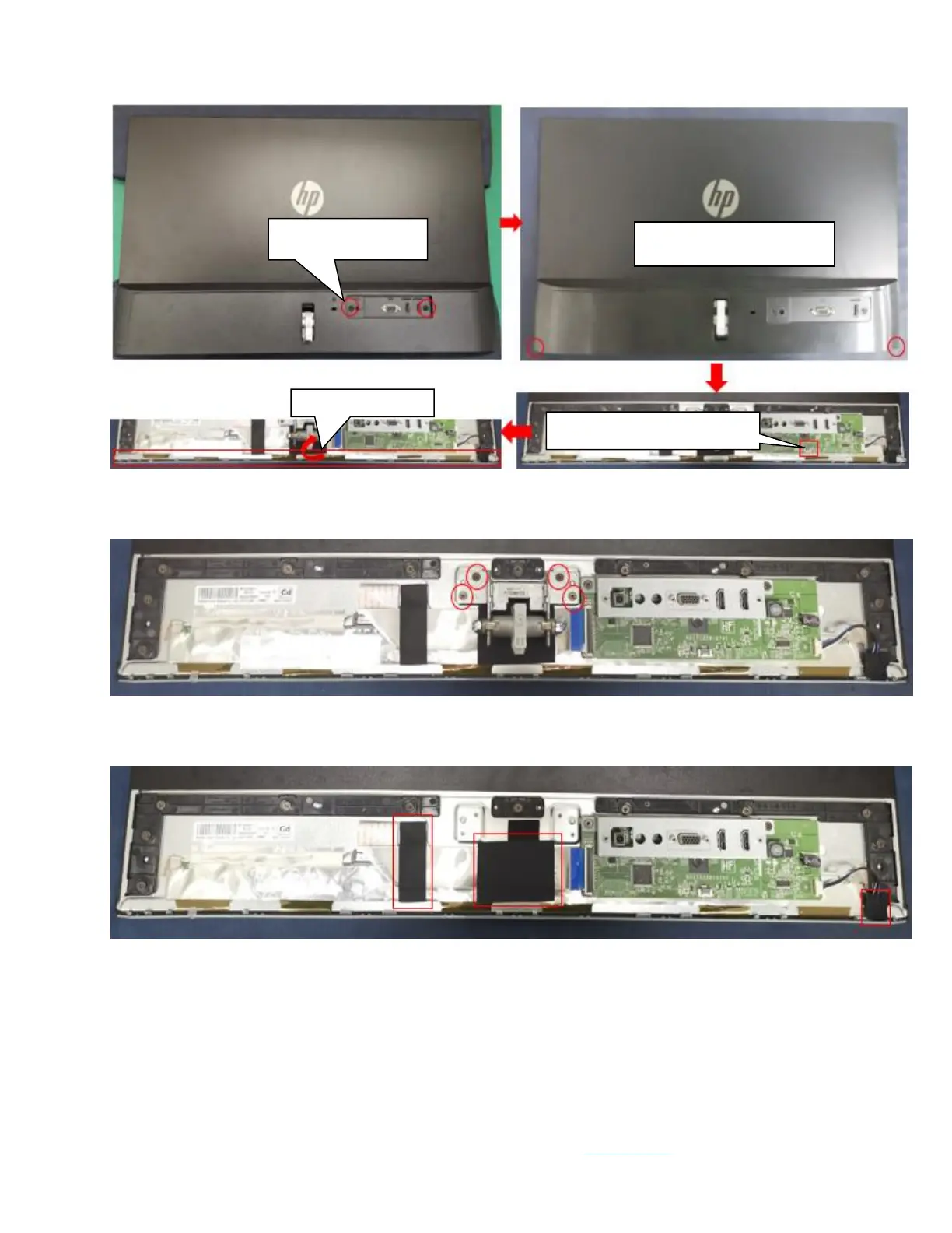 5. Remove the acetate tapes from the LVDS/ LED cable.