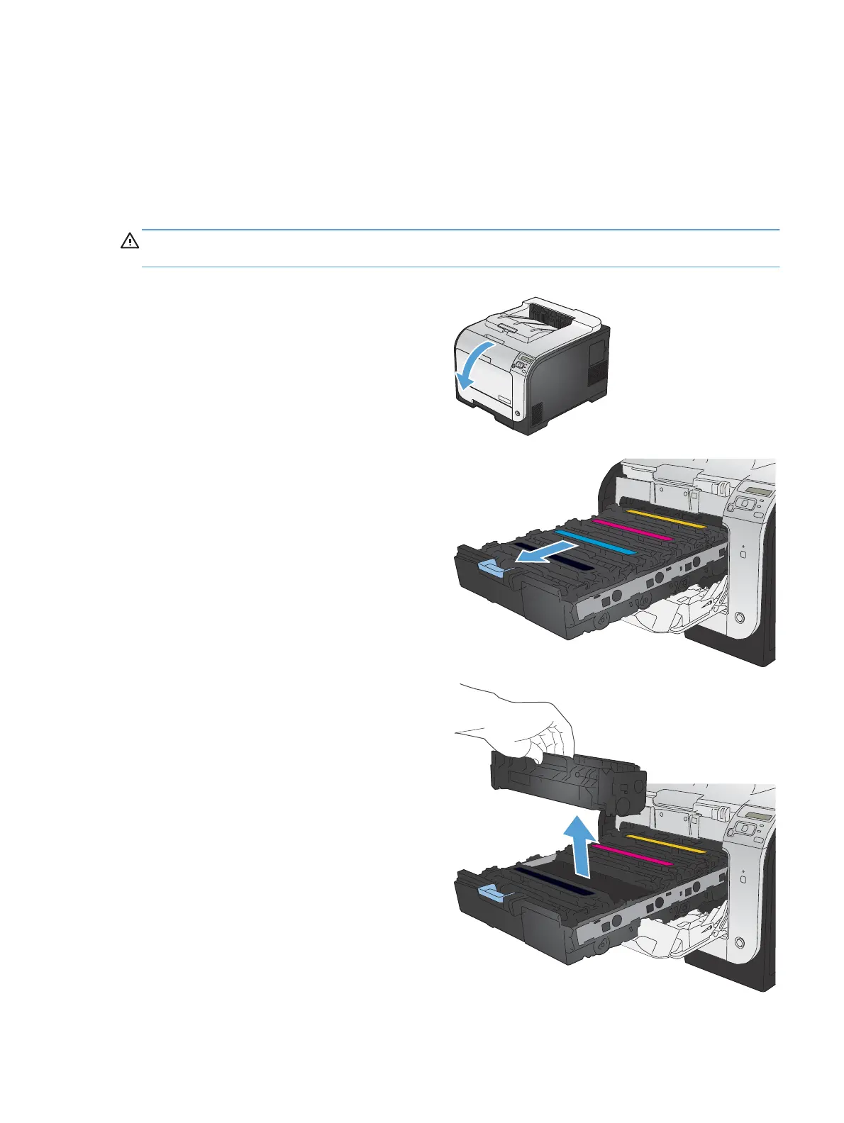 CAUTION: If toner gets on any clothing, wipe it off with a dry cloth and wash the clothing in cold