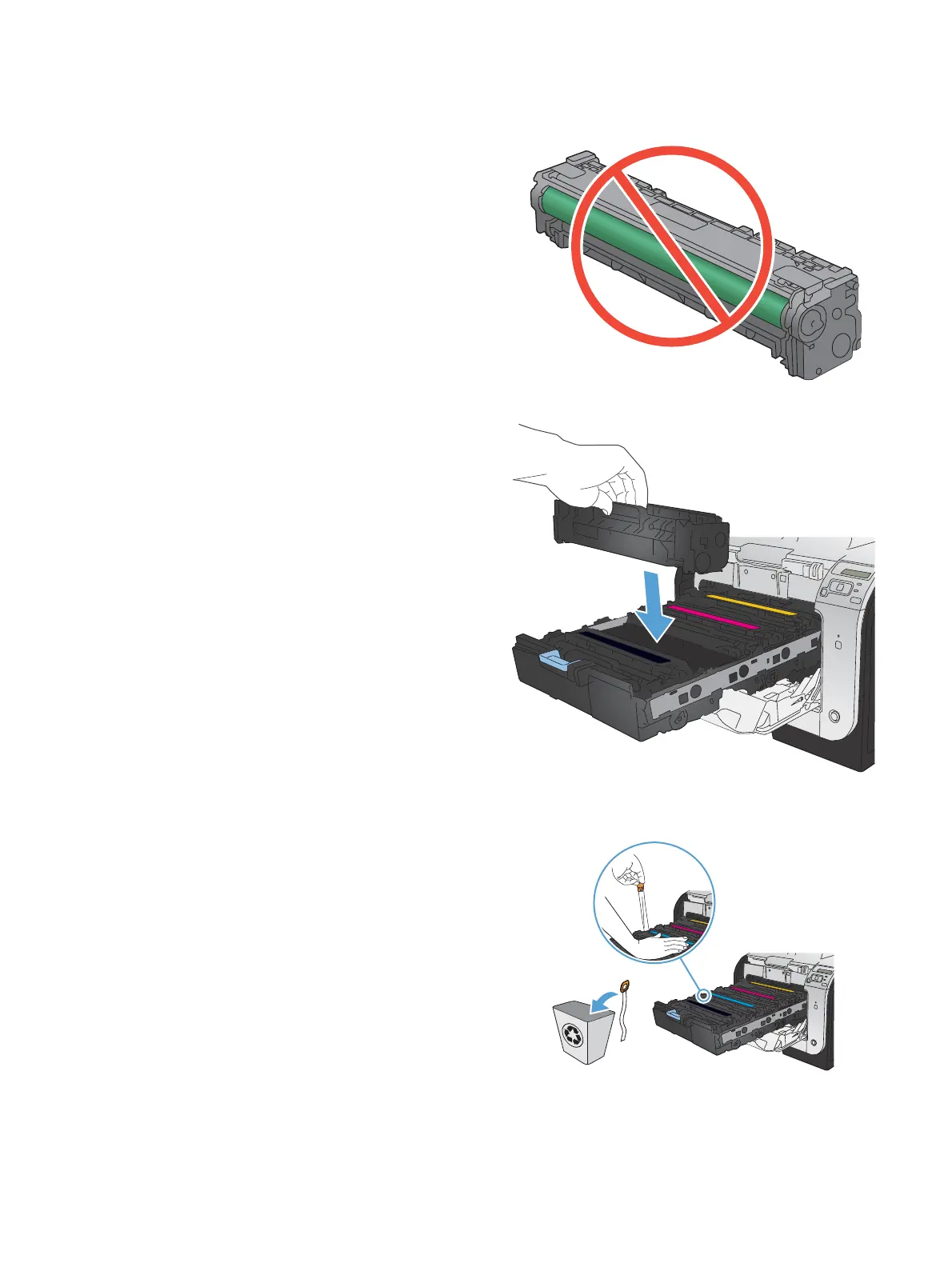 7. Do not touch the imaging drum on the bottom