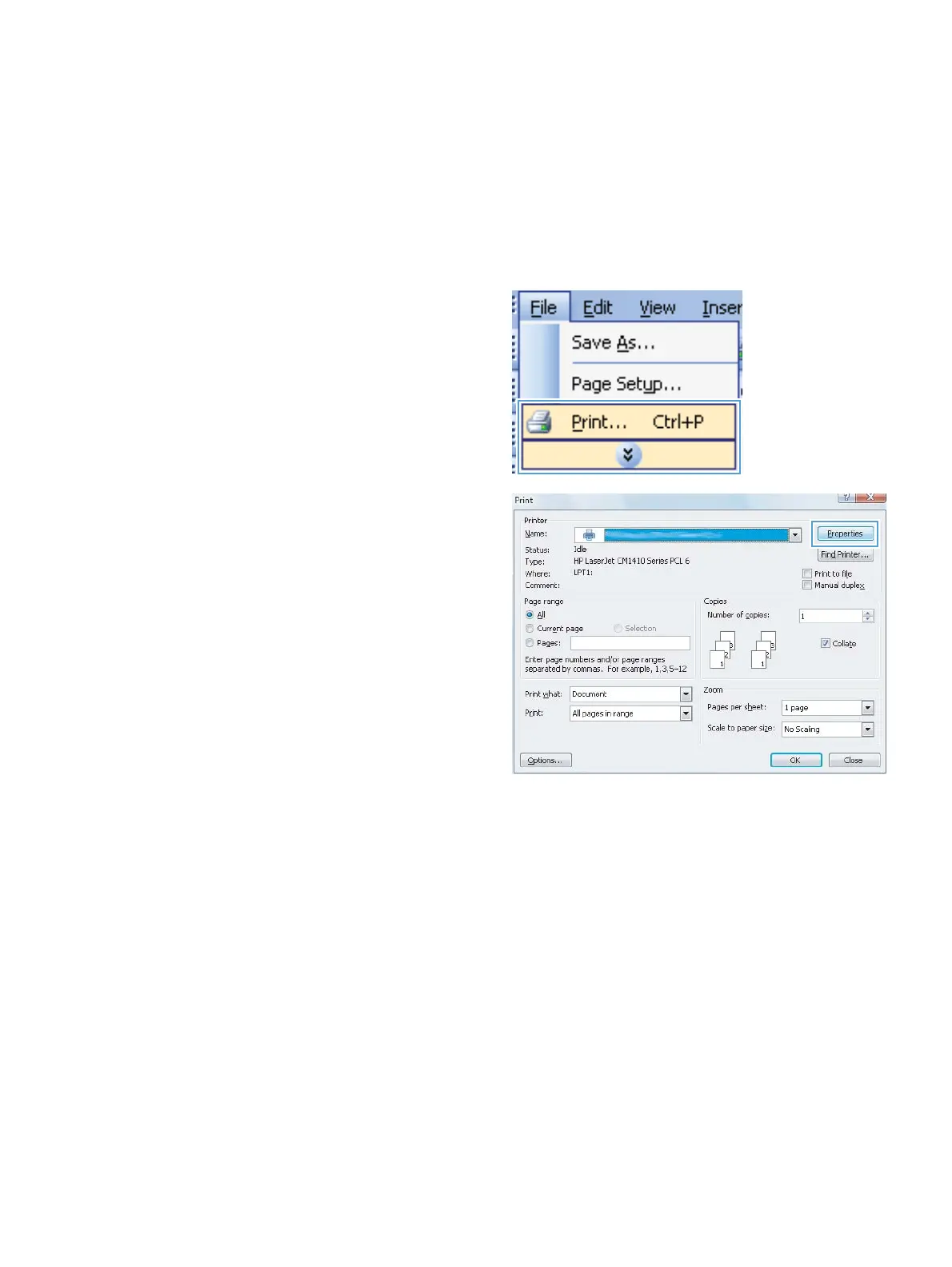 The methods to open the print dialog from software programs can vary. The procedures that follow