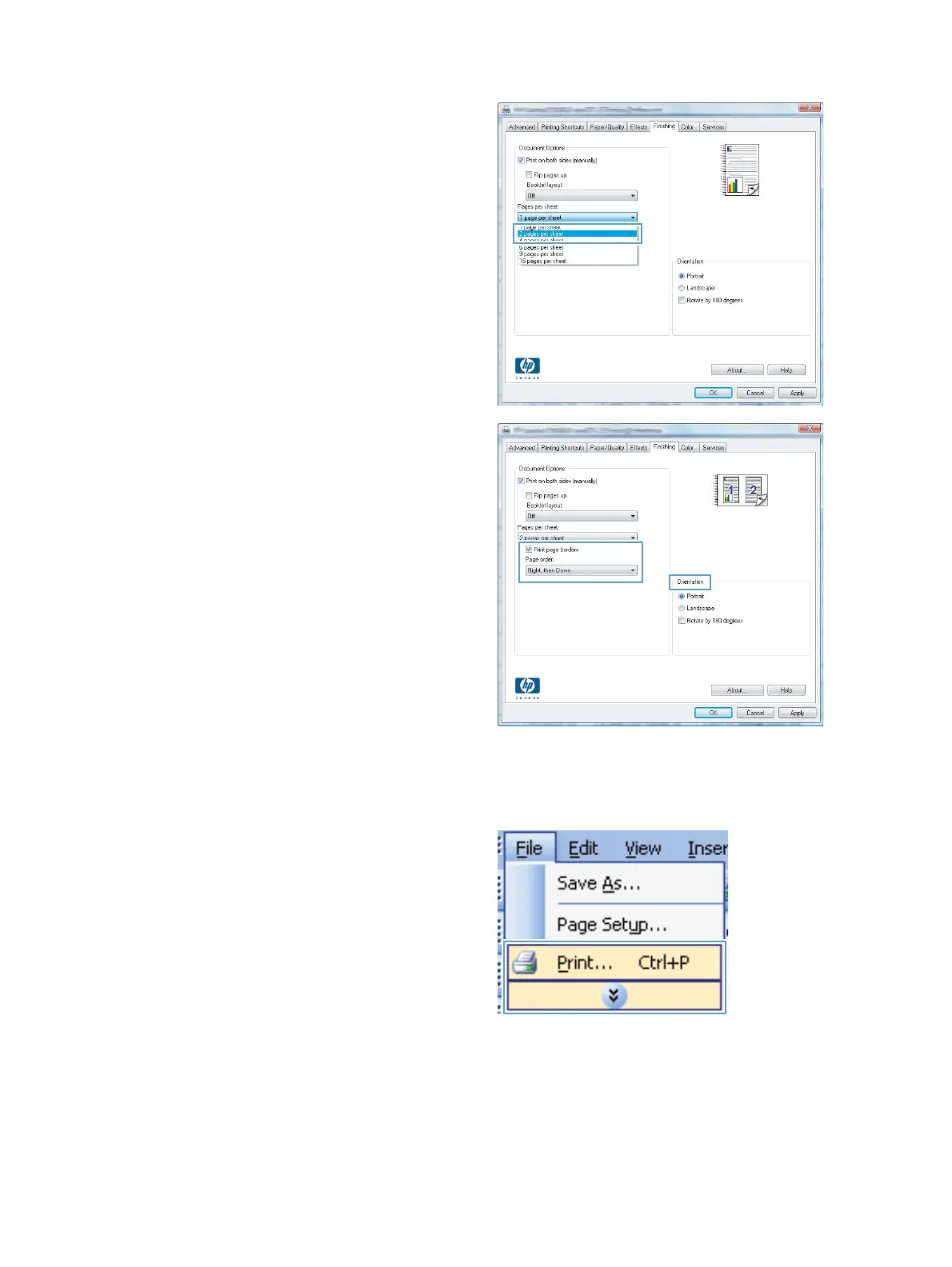 Page order, and Orientation options.