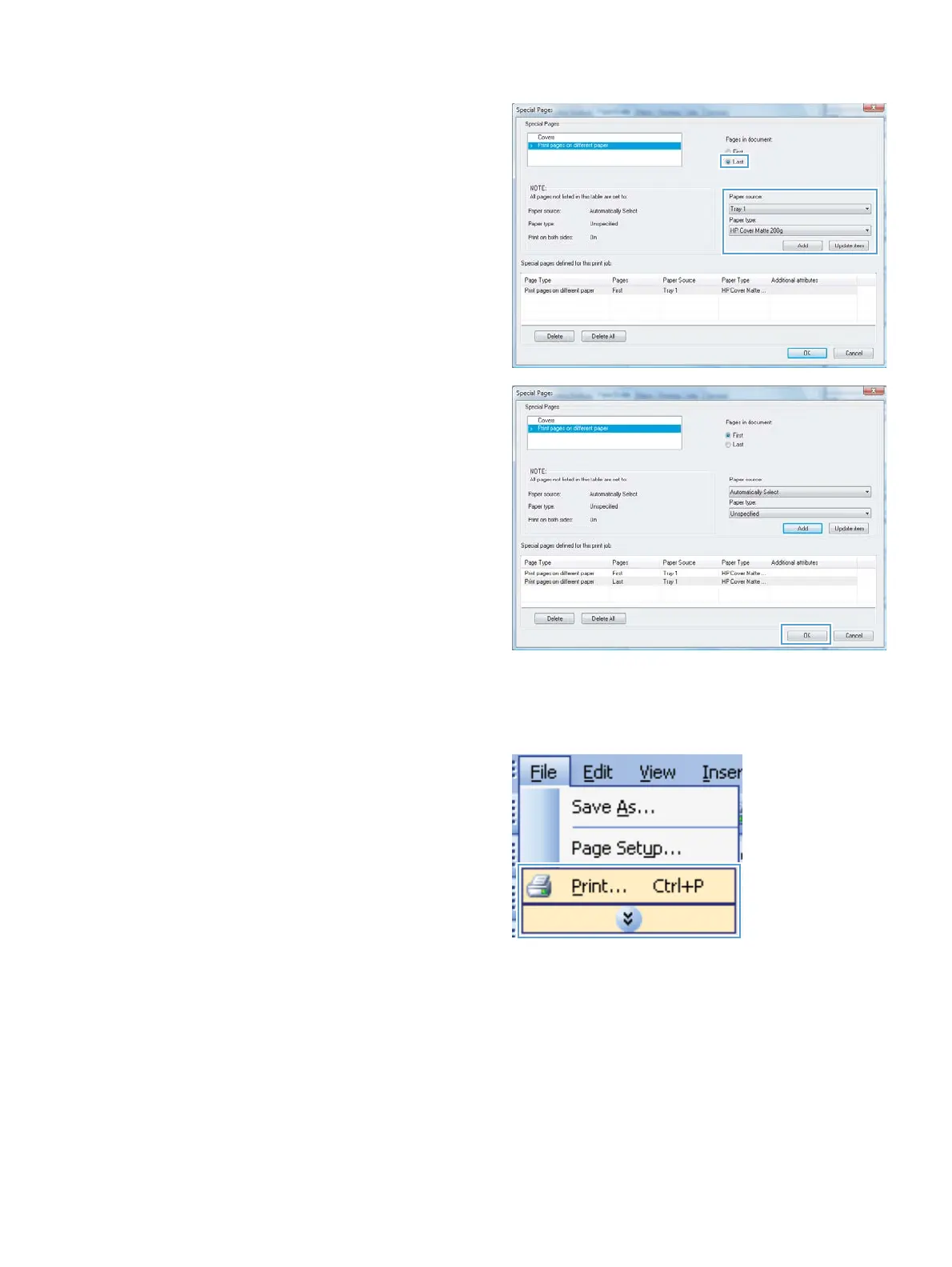 7. If you are printing both the first and last pages