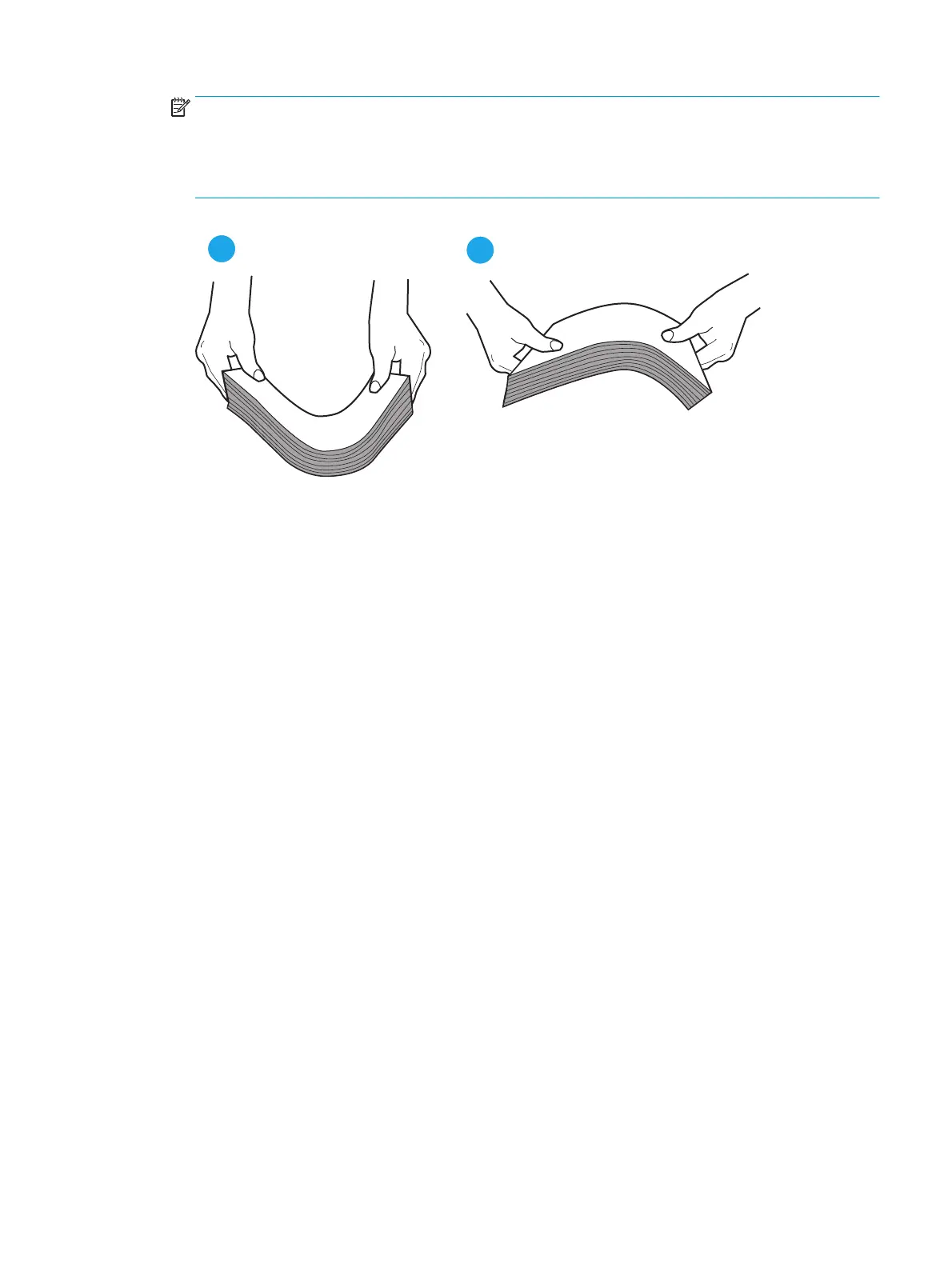 NOTE: Fanning the paper introduces static electricity. Instead of fanning the paper, flex the stack by