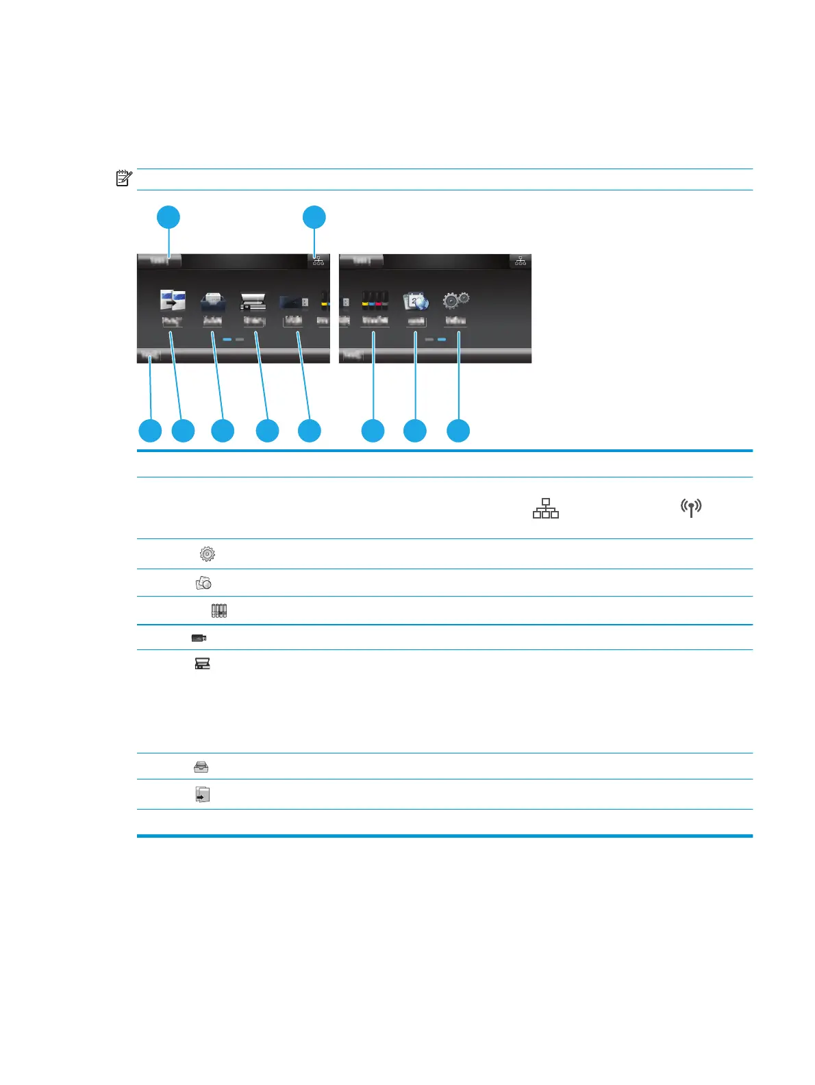 NOTE: The features that appear on the Home screen can vary, depending on the printer configuration.