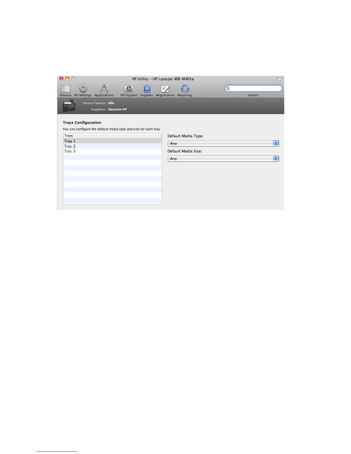 3. To change the paper size, select a tray and then select a different paper size in the Default