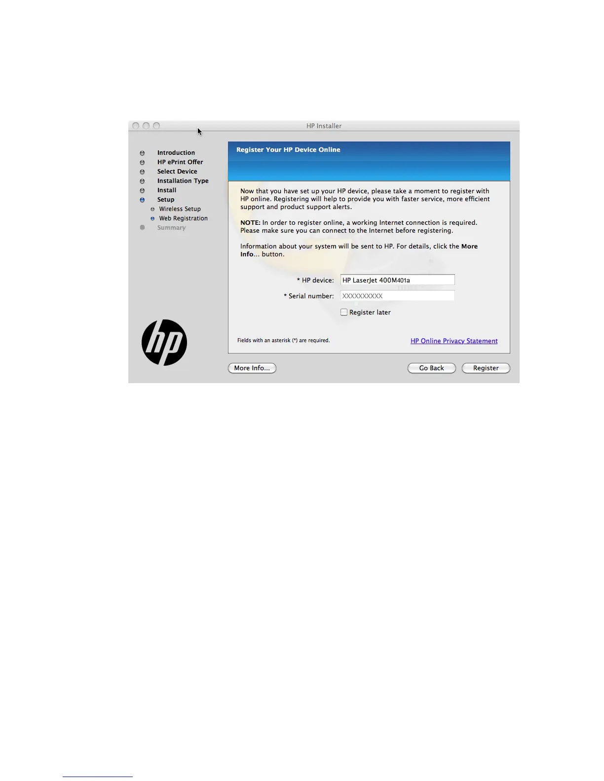 If you clicked the Register later check box and then clicked the Continue button, a popup