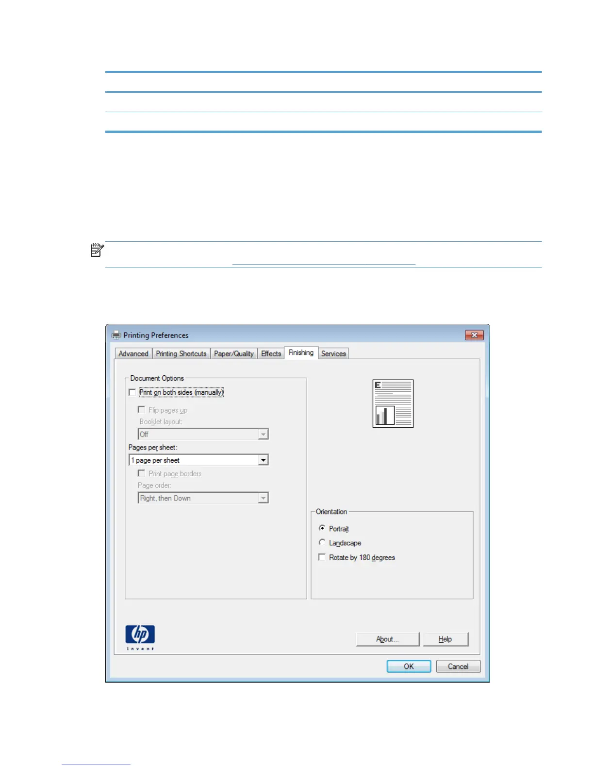 NOTE: The Finishing tab is located on the Printing Preferences tab set. For information about