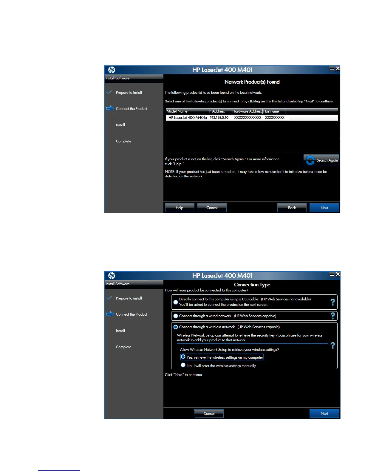 Figure 2-57 Software installation — Connection Type screen for wireless connected