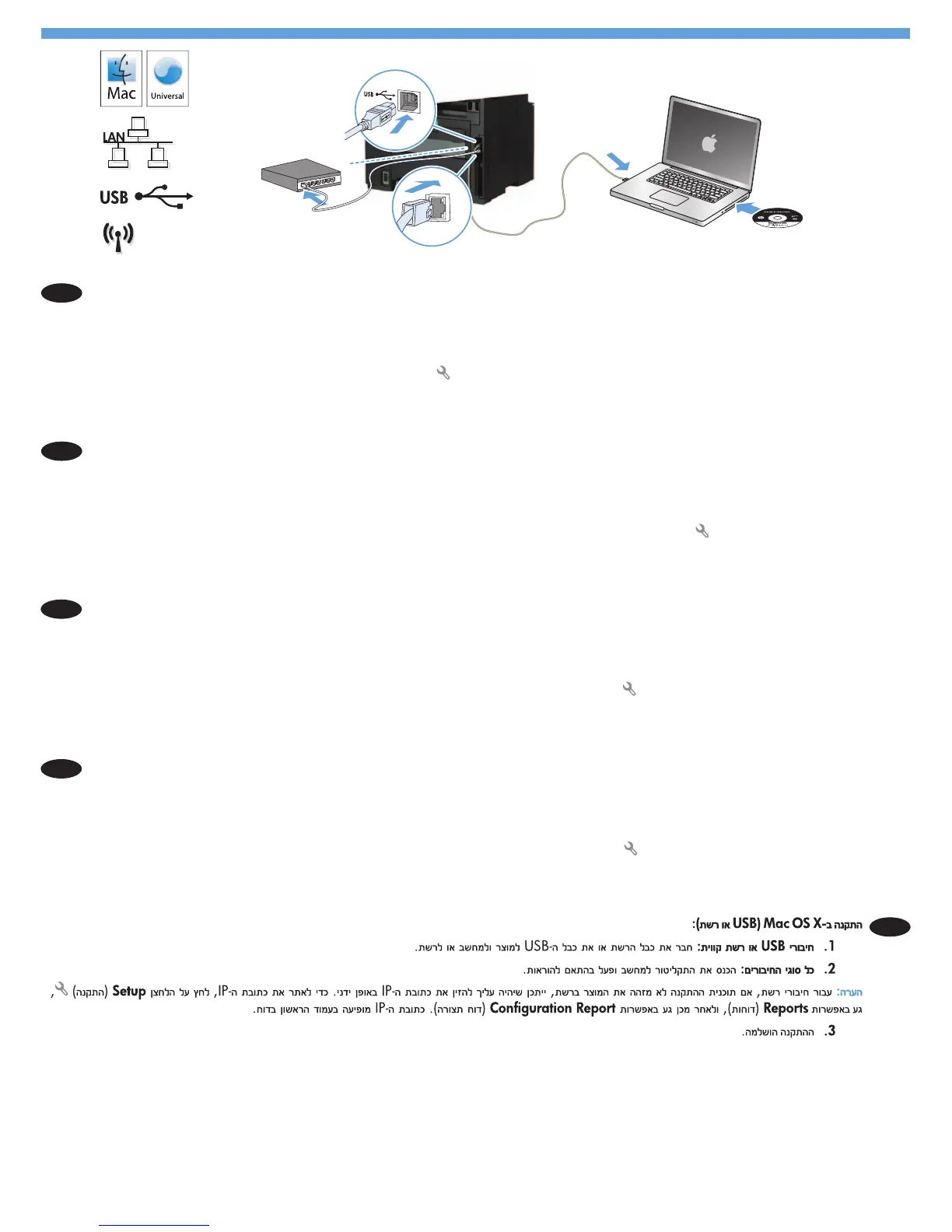 1. USB or wired network connections: Connect the USB or network cable to the product and the computer or network.