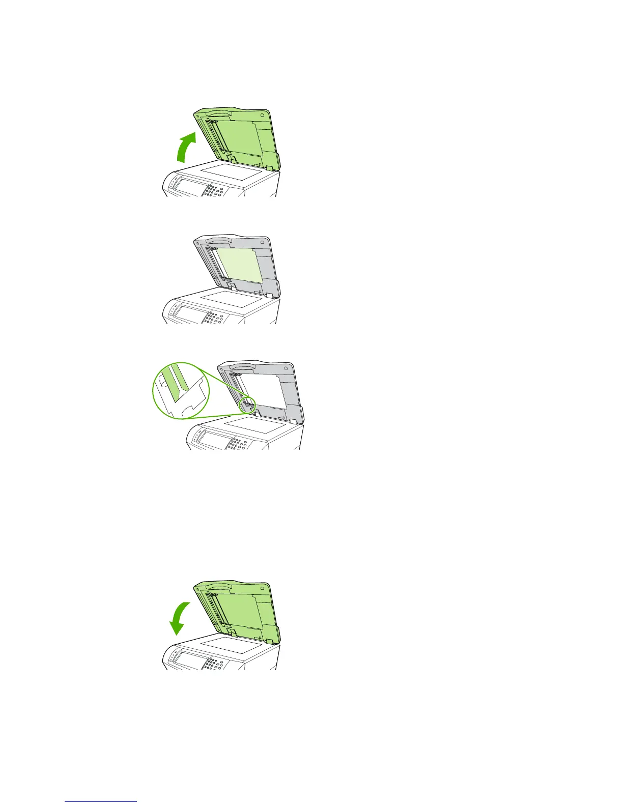 5. Clean the scanner glass by wiping it gently with a clean, slightly damp, lint-free cloth. Use an