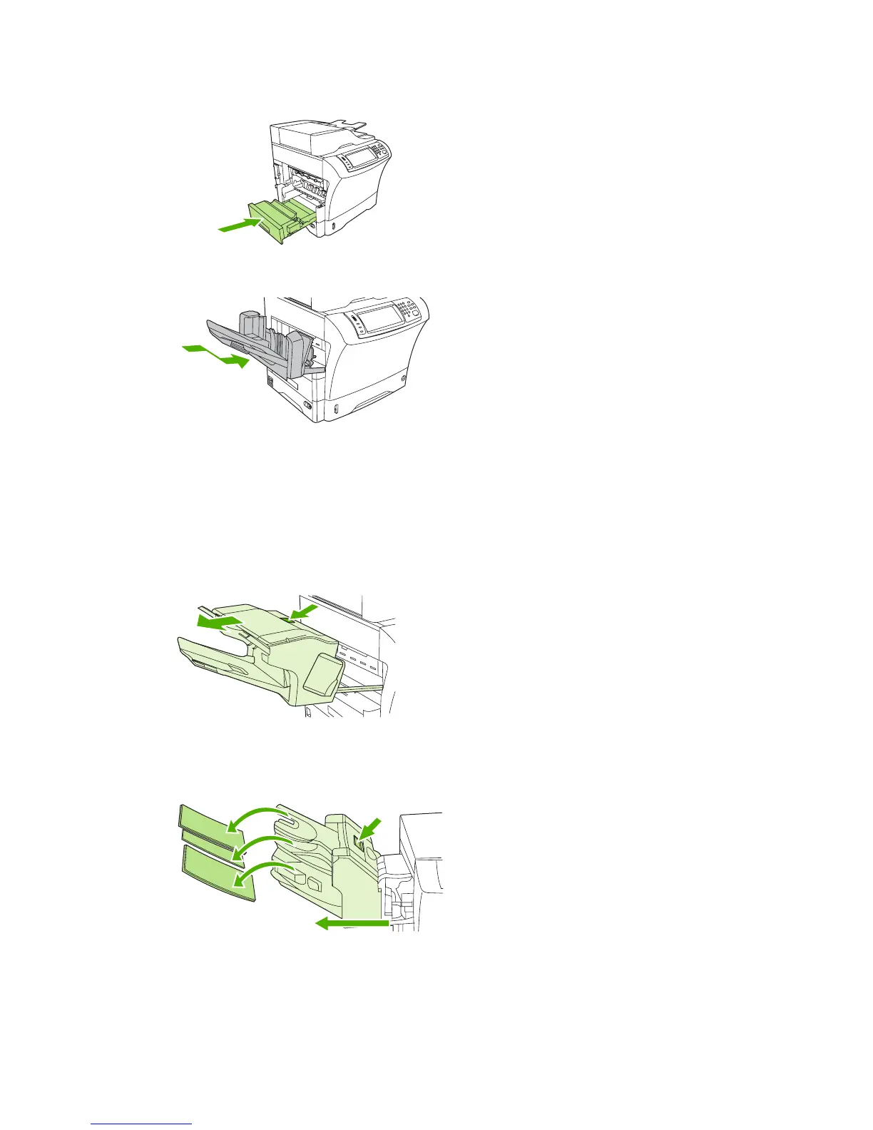 2. If you are using a 3-bin mailbox or a stapler/stacker, remove any media that is stacked, and