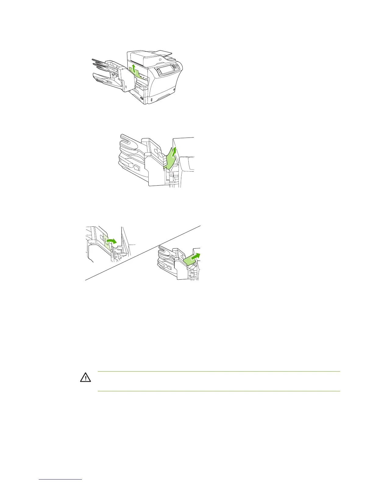6. Reinstall the output-bin assembly, the 3-bin mailbox, or the stapler/stacker. Insert the device at