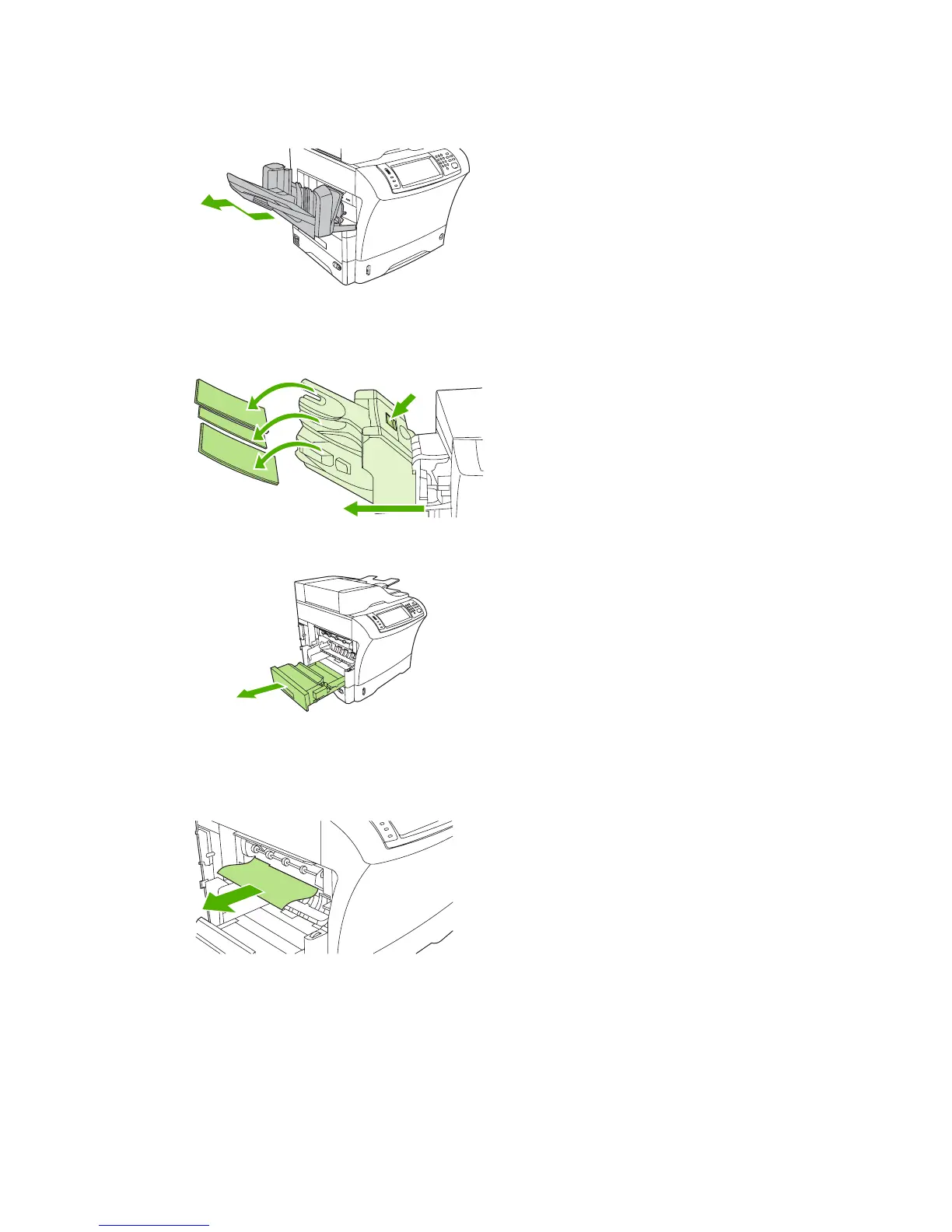 3. If you are using a 3-bin mailbox or a stapler/stacker, remove any media that is stacked, and