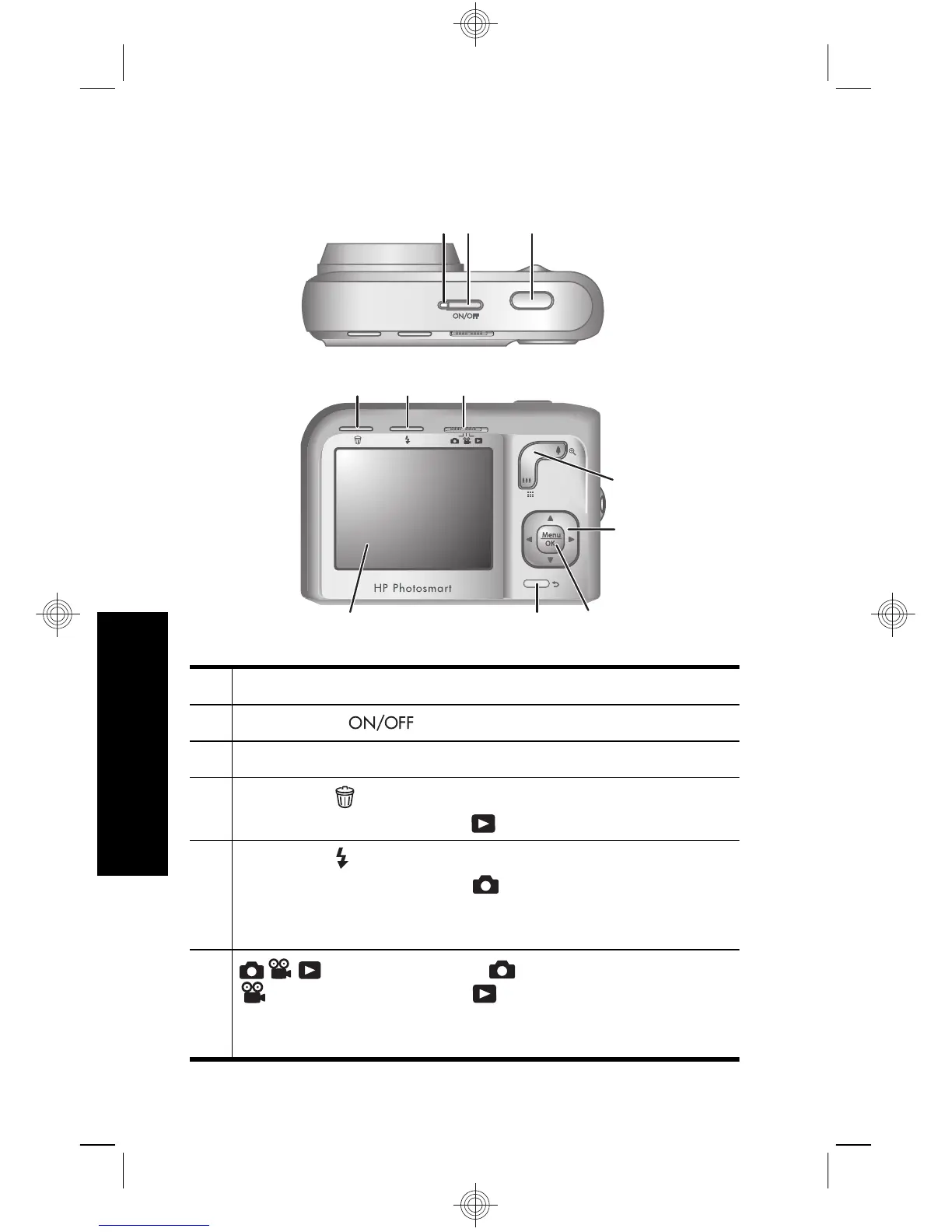 5 Knappen Blitz – åbner blitzindstillingerne, når
