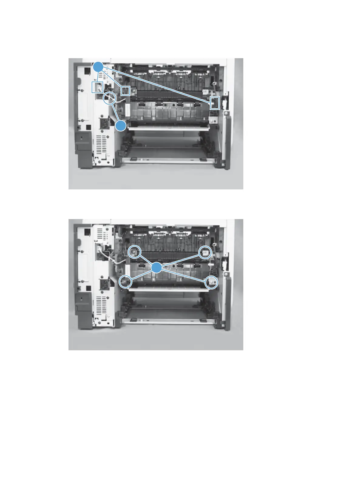 3. Disconnect three connectors (callout 1), and release one wire harness from the retainer (callout 2).