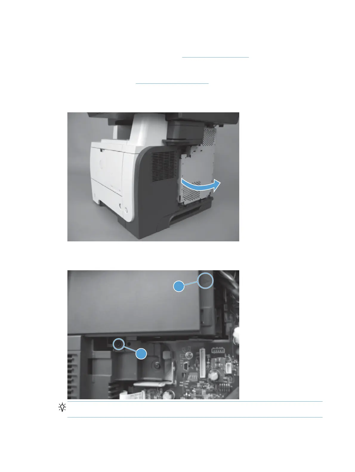 Reinstallation tip Disconnect the control-panel cable from the formatter to provide additional