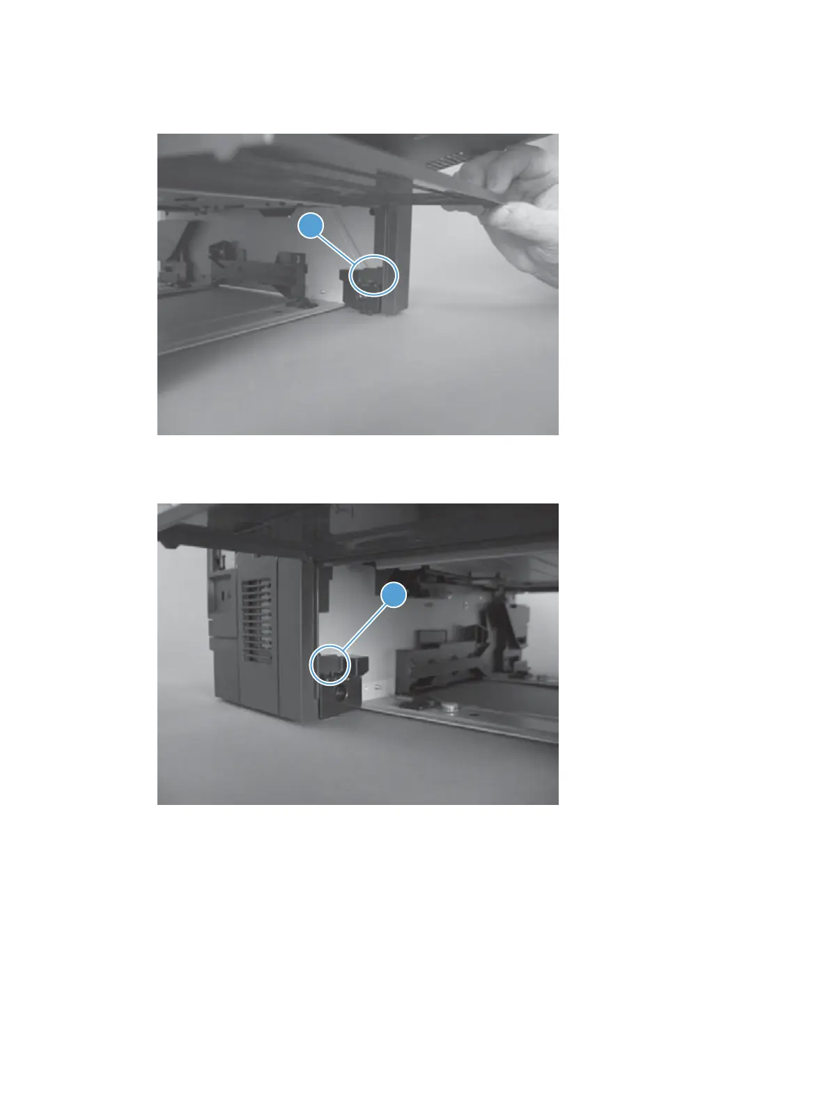5. Open the lower-rear door, and then release one tab (callout 1).