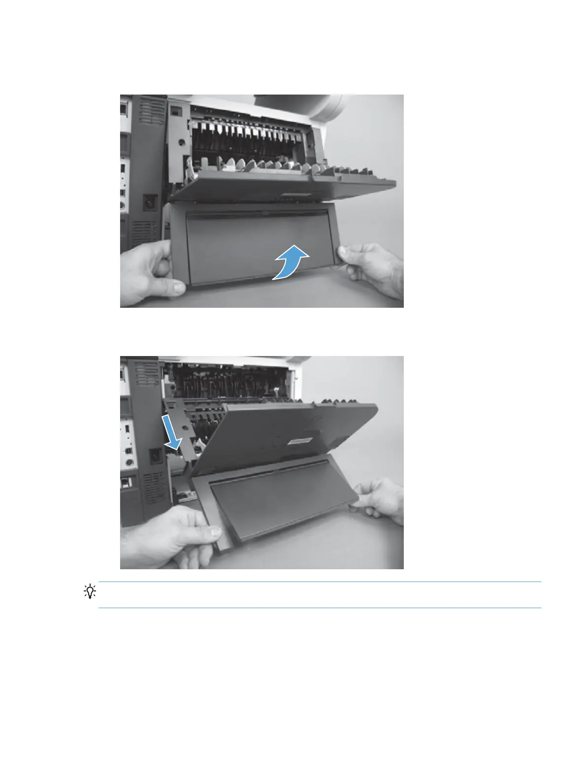 7. Rotate the bottom of the rear cover assembly away from the product.